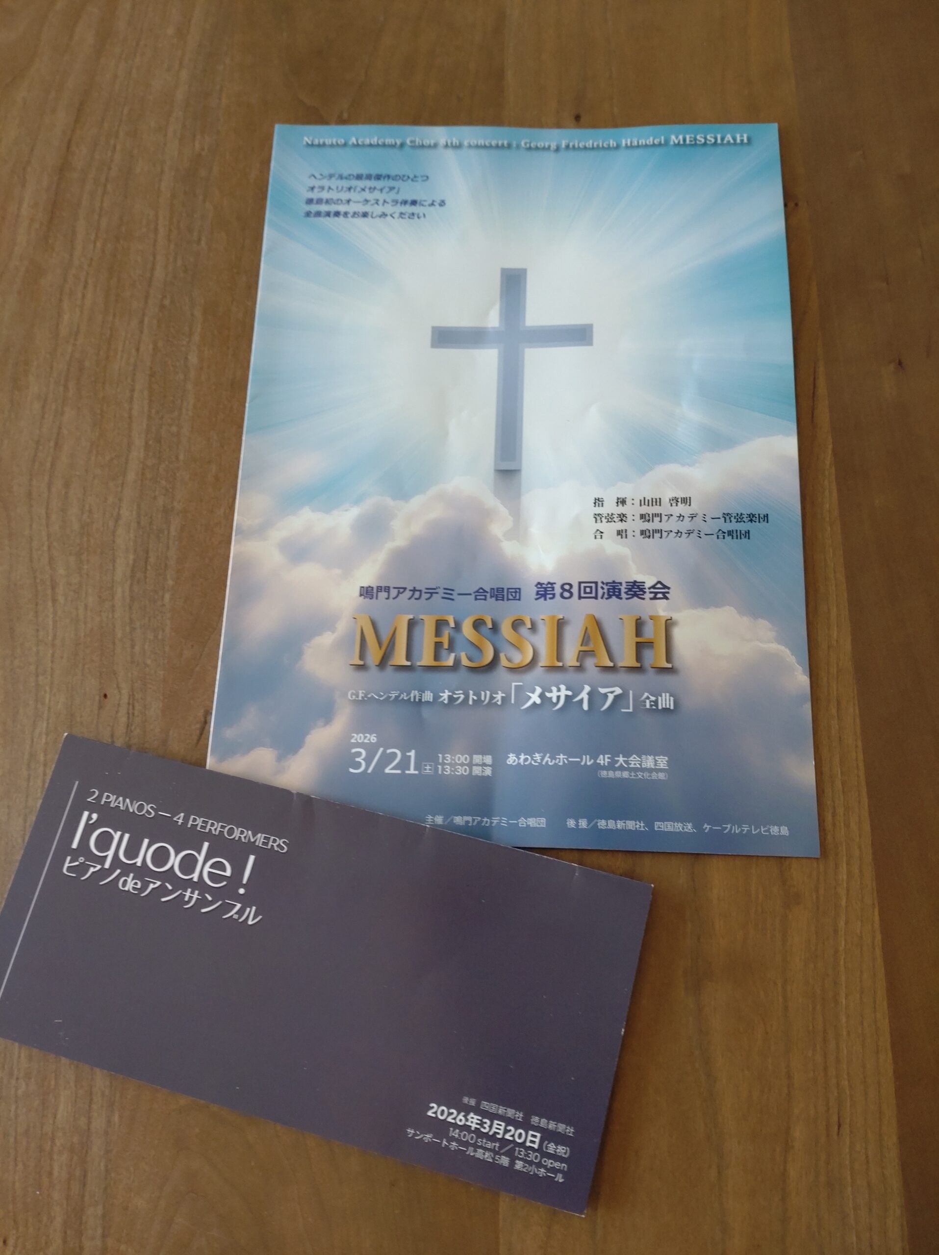 次の日は阿波銀ホールで行われたオラトリオ「メサイヤ」の全曲演奏。